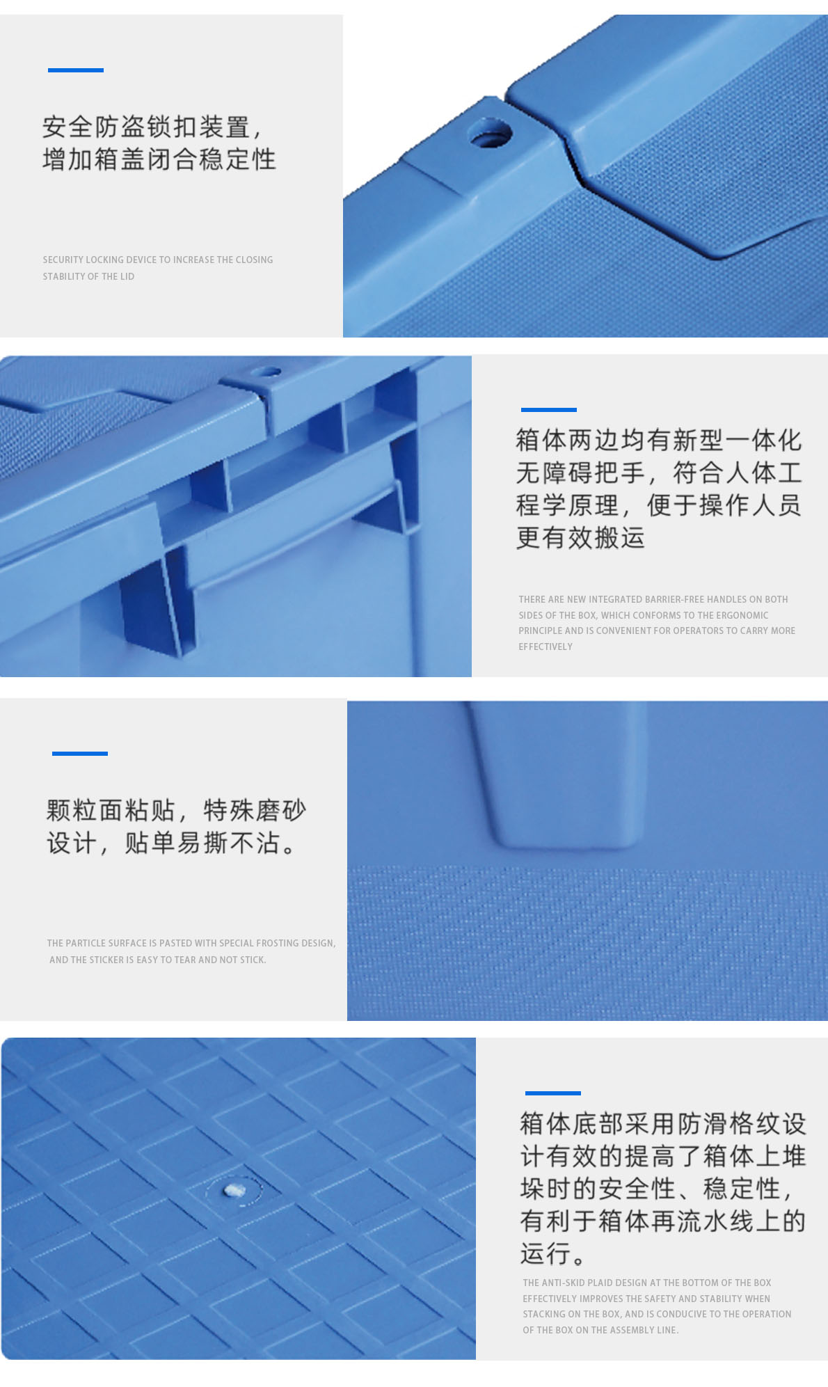 斜插式物流箱是公司引進國外專用模具和先進工藝設備、開發(fā)生產(chǎn)的物流周轉(zhuǎn)容器。 產(chǎn)品廣泛應用于 連鎖超市、煙草、郵政、醫(yī)藥、輕工等行業(yè),使商品周轉(zhuǎn)便捷,堆放整齊,便于管理。特別是超強的抗沖 擊性能,使其適用于工廠物流中的運輸、儲存、流通加工等環(huán)節(jié)。斜插式帶蓋物流箱空箱時,具有可互相 插入堆放的特點,從而最多可以節(jié)省70%的堆放空間。特別是在空箱擺放、運輸過程中可大大減少空間, 節(jié)約成本。